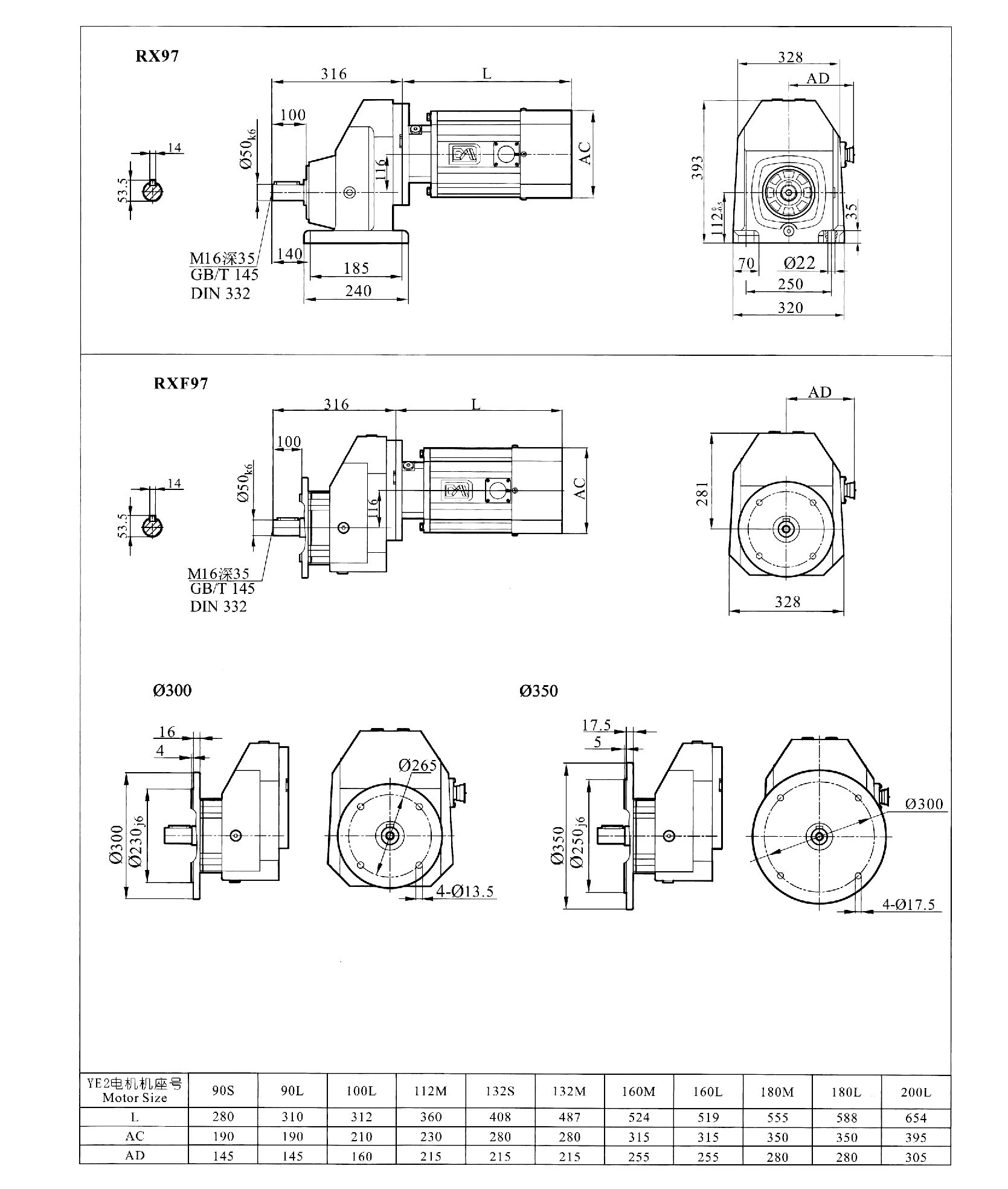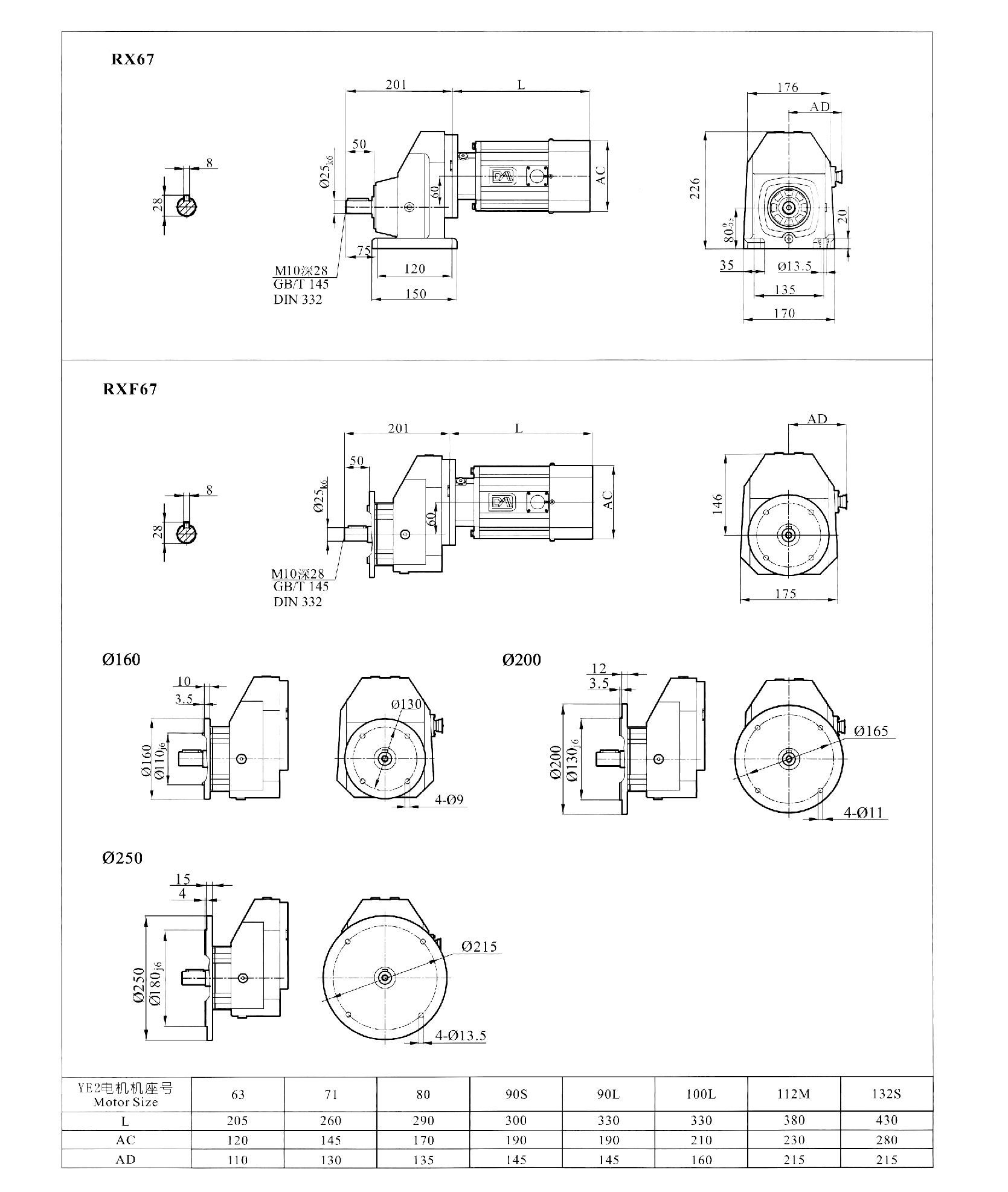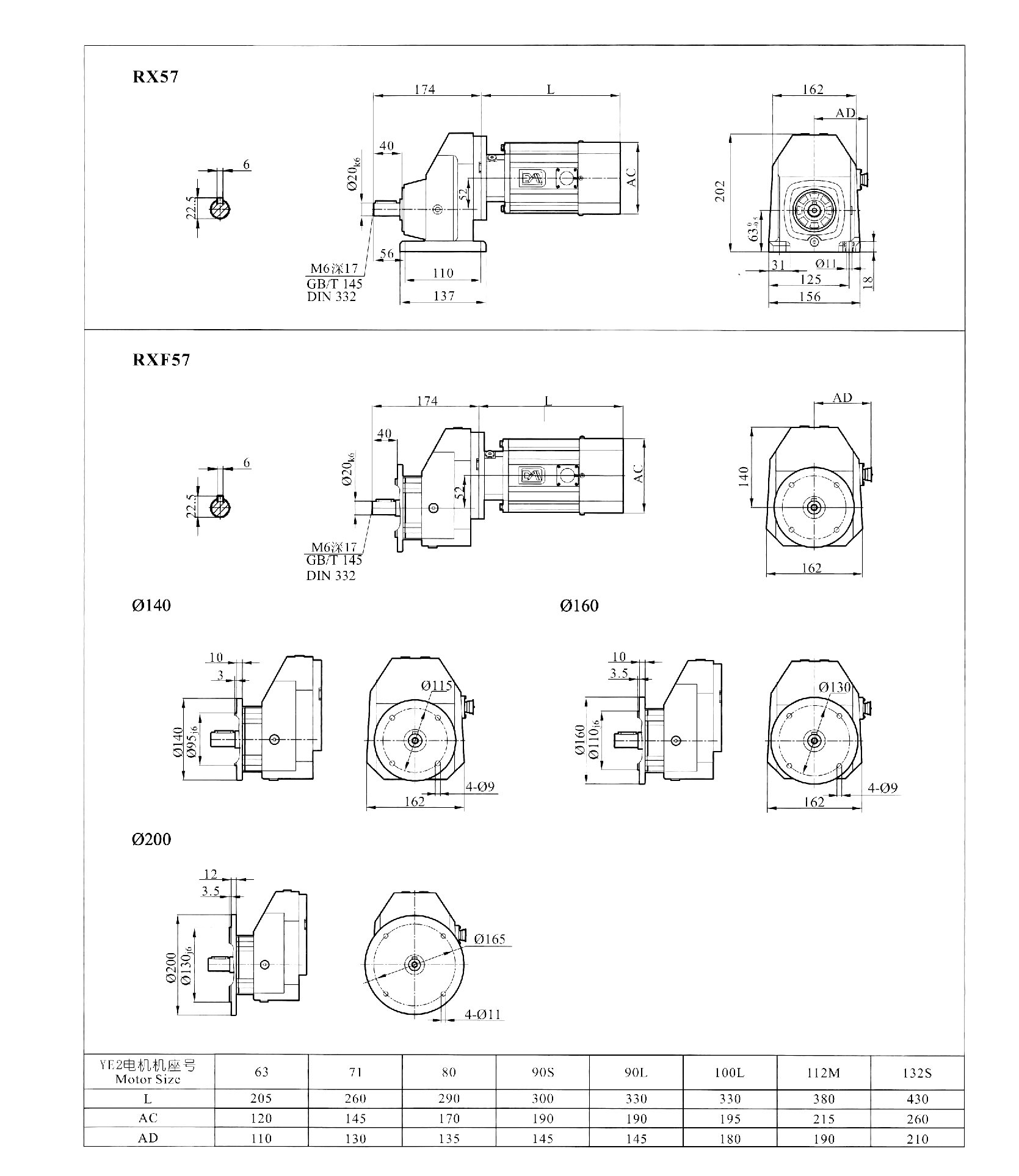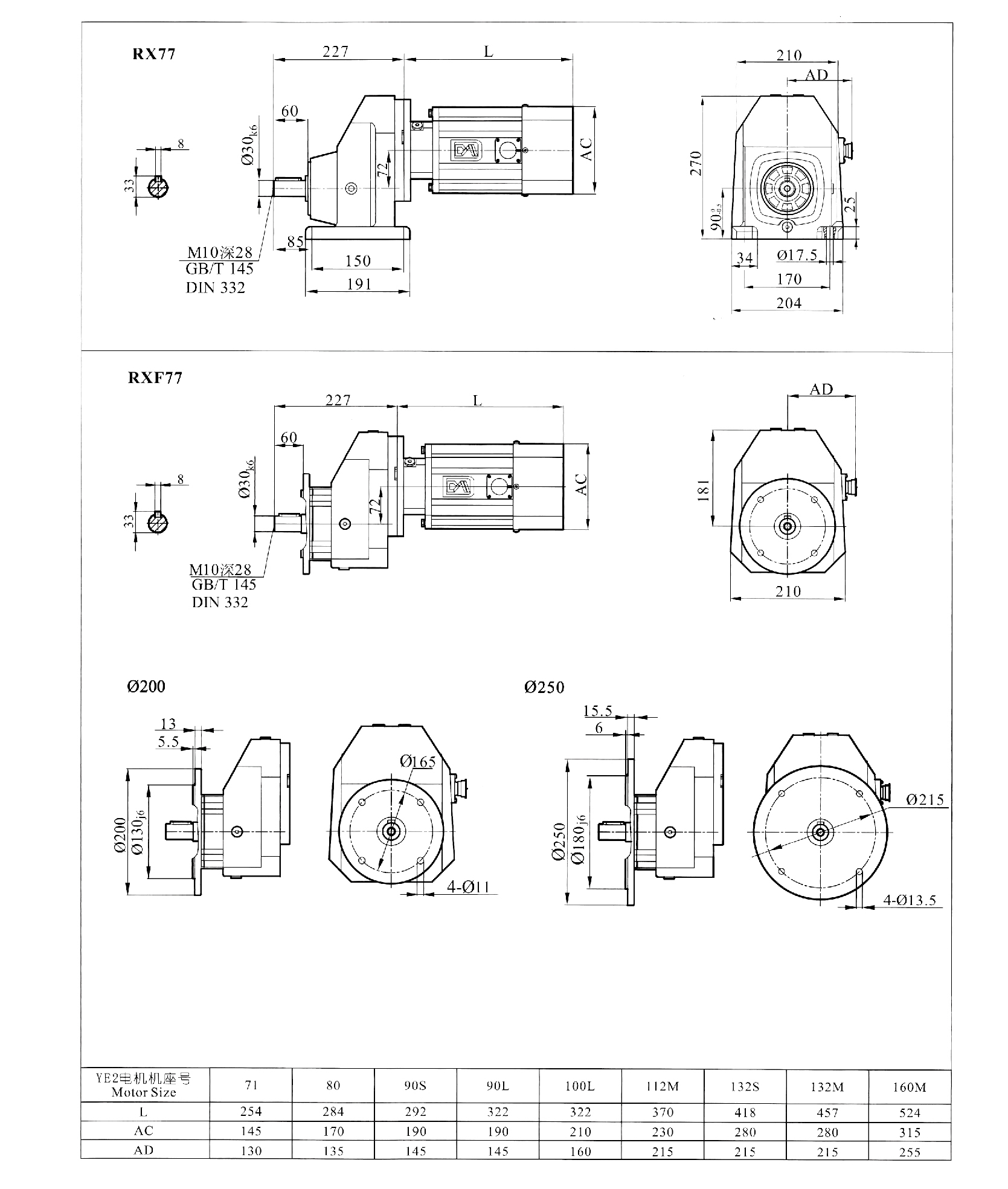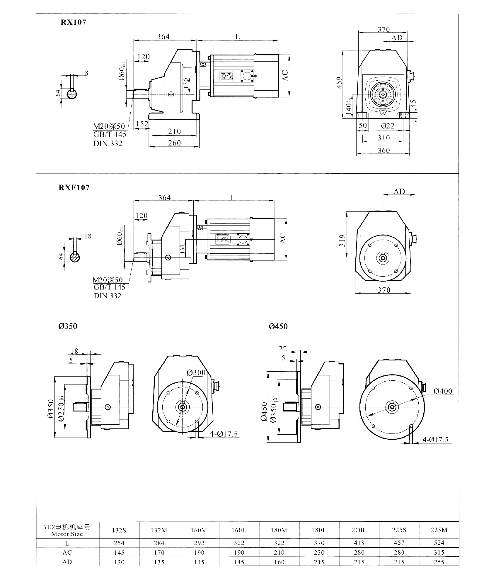 RXF series reducer adopts solid shaft output and supports a variety of installation methods, including flange mounting and foot mounting, to meet the needs of different equipment. Its output torque can reach 28000N.m, and the power range ranges from 0.18kW to 200kW, which is suitable for various applications from light load to heavy load.