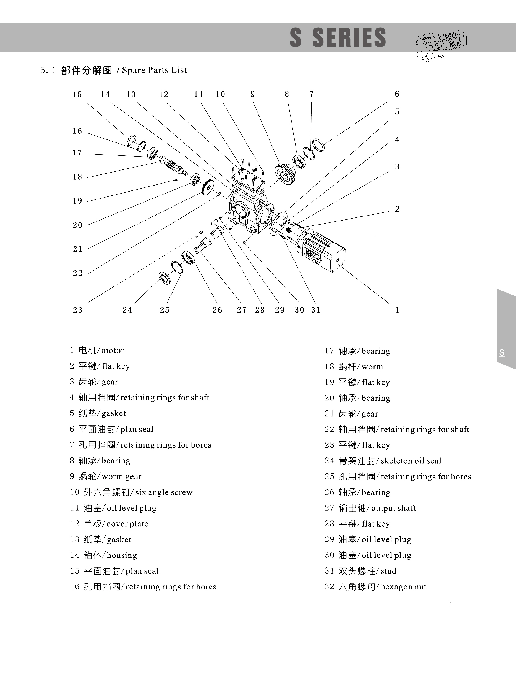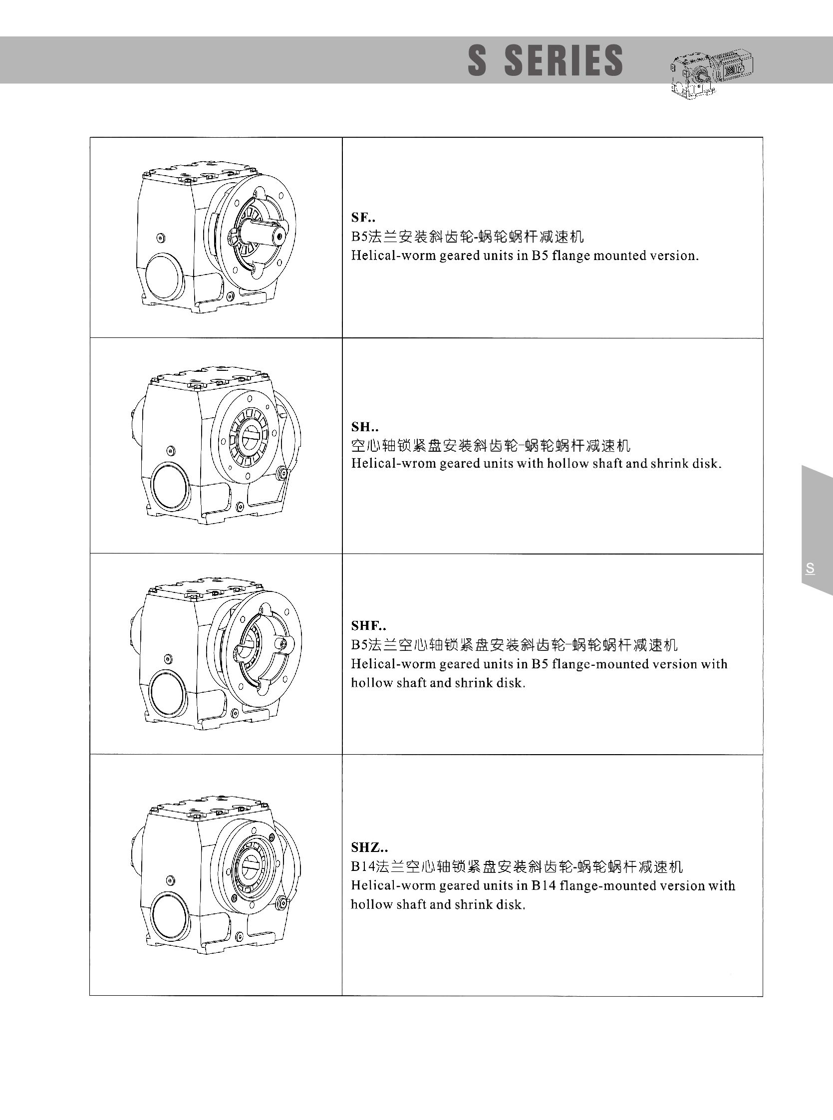 The S series reducer adopts a combination of helical gears and worm gears, with a transmission efficiency of more than 95%, which is much higher than that of single-stage worm gear reducers.